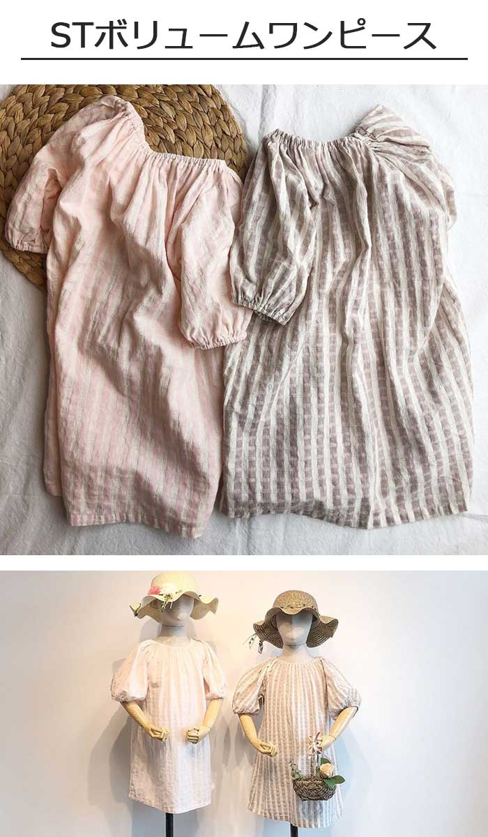 STボリュームワンピース/サマードレス/オーバーフィット/ストライプ/バカンス【子供服/キッズ/韓国子供服/子ども服/CHUMCHUM/チャムチャム】【80/90/100/110/120/130】